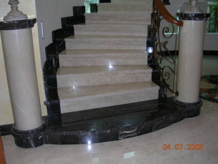 đá markble làm cầu thang viền đen, mặt vàng nhạt.jpg